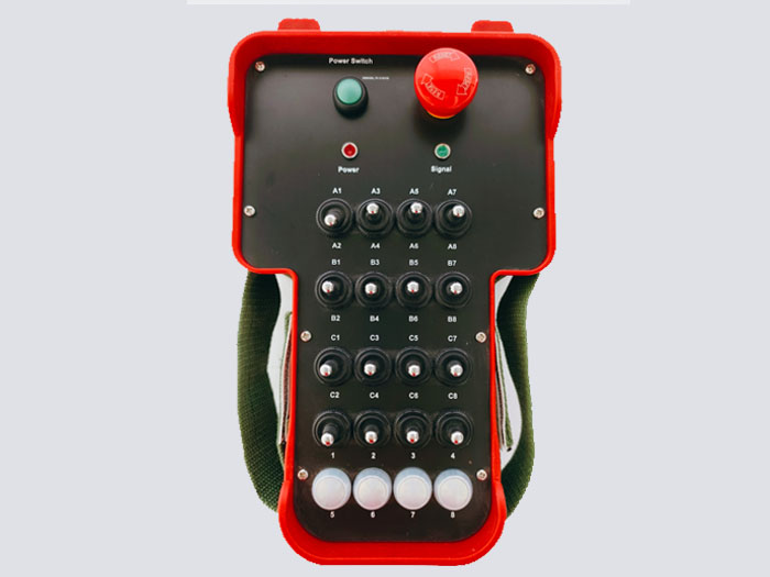 • 24个三位自复位钮子开关式48路开关量控制工业无线遥控器